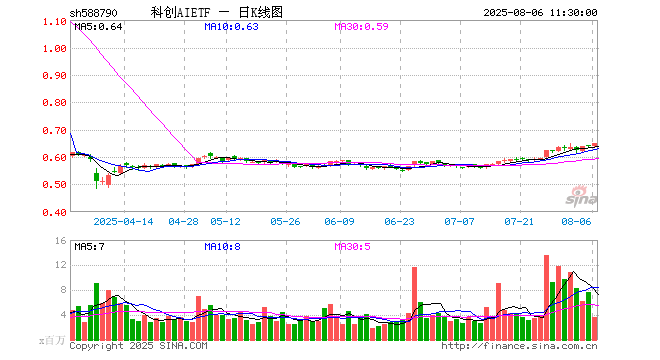 8月6日,截止午间收盘,科创AIETF(588790)涨1.72%,报0.650元,成交额2.28亿元。科创AIETF(588790)重仓股方面,寒武纪截止午盘跌0.63%,澜起科技涨6.73%,金山办公跌0.13%,芯原股份涨2.58%,石头科技涨0.26%,恒玄科技跌0.60%,晶晨股份涨1.82%,复旦微电涨2.61%,中科星图跌1.08%,道通科技涨1.80%。